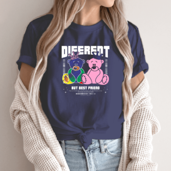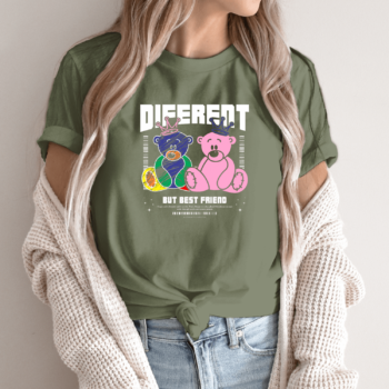 Unisex marškinėliai su spauda „Diferent but best friend“