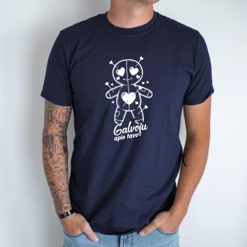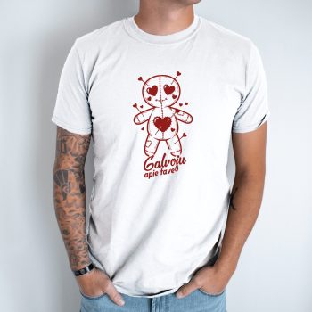 Unisex marškinėliai su spauda „Galvoju apie tave“