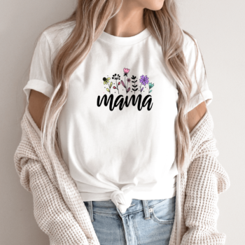 Unisex marškinėliai su spauda „Žiedlapių Mama“