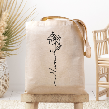 Medžiaginis maišelis su spauda „Mama ir gėlė“