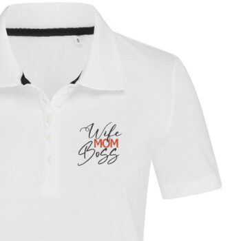 Moteriški polo marškinėliai „Wife, mom, boss“
