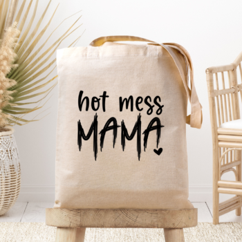 Medžiaginis maišelis su spauda „Hot mess mama“