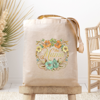 Medžiaginis maišelis su spauda „Gėlėta Mama“