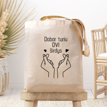 Medžiaginis maišelis su spauda „Dabar turiu dvi širdis“