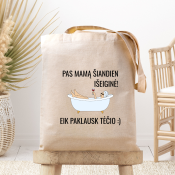 Medžiaginis maišelis su spauda „Pas mamą šiandien išeiginė“