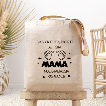 Medžiaginis maišelis su spauda „Mama nuostabiausia pasaulyje“