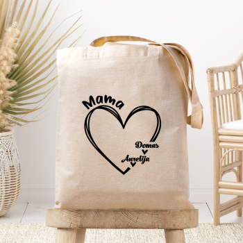 Medžiaginis maišelis su spauda „Mamos širdis su vardais“
