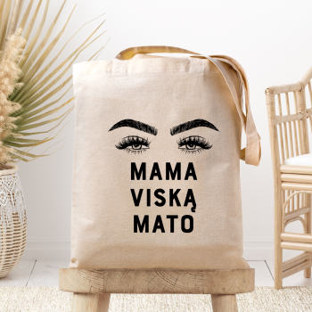 Medžiaginis maišelis su spauda „Mama viską mato“