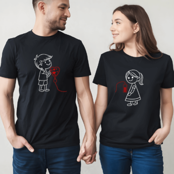 Unisex marškinėliai porai „Meilės įkrovimas“