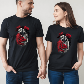 Unisex marškinėliai porai „Romantiška skeletų pora“