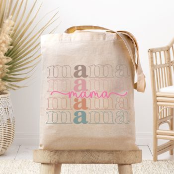 Medžiaginis maišelis su spauda „Spalvoto kaspino Mama“