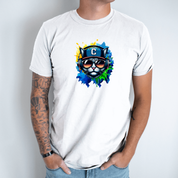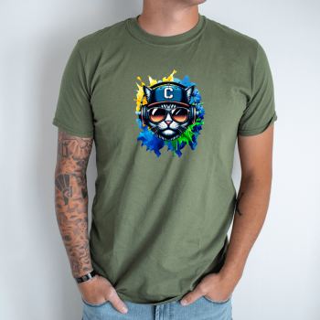 Unisex marškinėliai su spauda „DJ katinas“