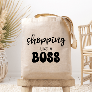 Medžiaginis maišelis su spauda „Shopping Like A Boss“