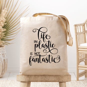 Medžiaginis maišelis su spauda „Plastic not fantastic“