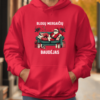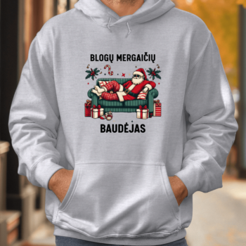 Unisex džemperis su spauda „Blogų mergaičių baudėjas“