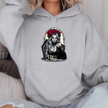 Unisex džemperis su spauda „Mistinė valdovė su kate“