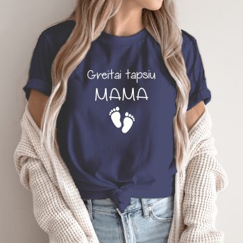 Unisex marškinėliai su spauda „Greitai tapsiu mama“