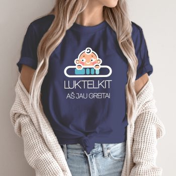 Unisex marškinėliai su spauda „Luktelkit, aš pakeliui“