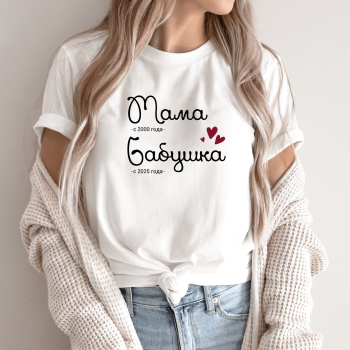 Unisex marškinėliai su spauda „Мама и бабушка с… года“