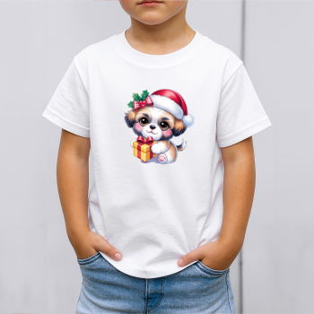 Vaikiški marškinėliai su spauda „Kalėdinis šuniukas“