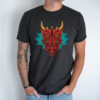 Unisex marškinėliai su spauda „Piktas raudonas drakonas“