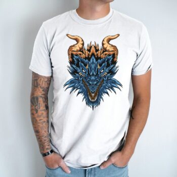 Unisex marškinėliai su spauda „Piktas mėlynas drakonas“