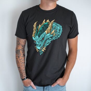 Unisex marškinėliai su spauda „Žydraakis Drakonas“