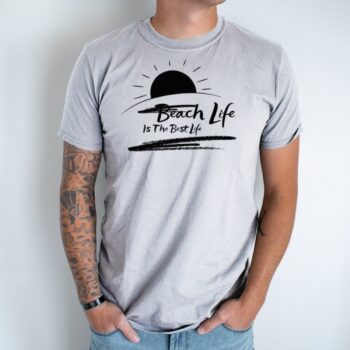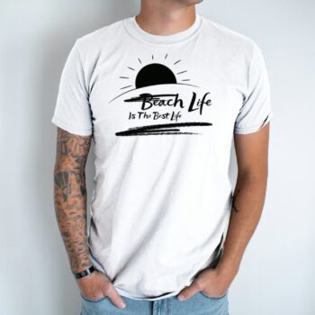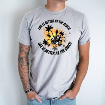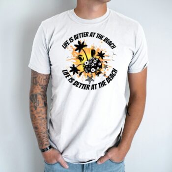 Unisex marškinėliai su spauda „Gyvenimas geresnis – pliaže“