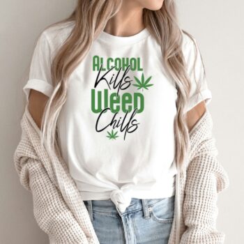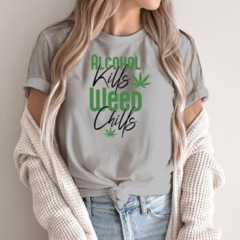 Unisex marškinėliai su spauda „Alcohol Kills – Weed Chills“
