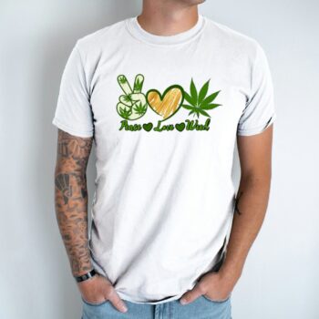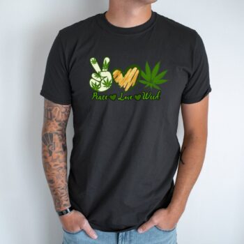 Unisex marškinėliai su spauda „Peace, Love, Weed“