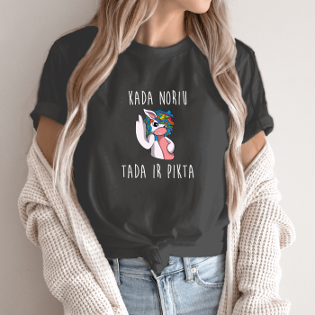 Unisex marškinėliai su spauda „Piktas spalvotas vienaragis“
