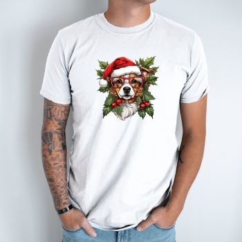 Unisex marškinėliai su spauda „Kalėdų šuniukas“