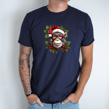 Unisex marškinėliai su spauda „Kalėdų šimpanzė“