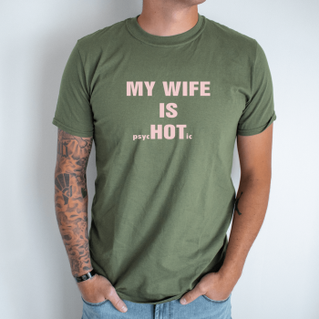 Unisex marškinėliai su spauda „My wife is psiHOTic“