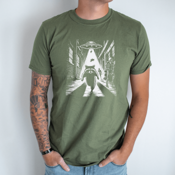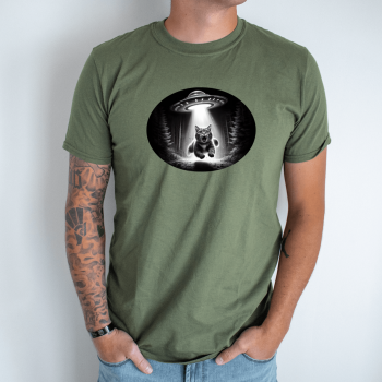 Unisex marškinėliai su spauda „Ateivių katino pagrobimas“