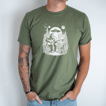 Unisex marškinėliai su spauda „Bigfuto serenada“