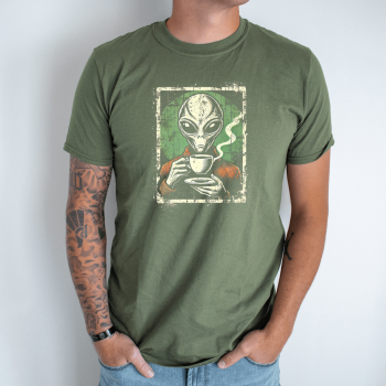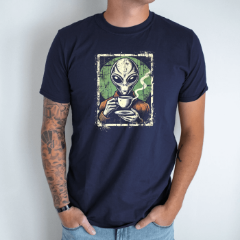 Unisex marškinėliai su spauda „Kava iš kitos galaktikos“