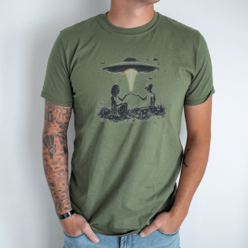 Unisex marškinėliai su spauda „Susitikimai su marsiečiu“