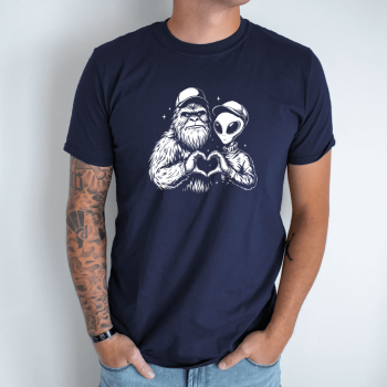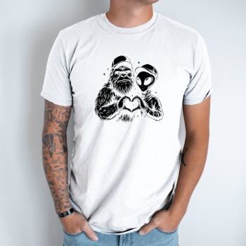 Unisex marškinėliai su spauda „Marsietis ir Bigfutas kartu“