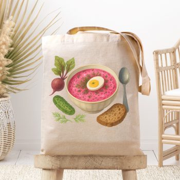 Medžiaginis maišelis su spauda „Tradiciniai šaltibarščiai“