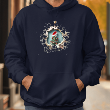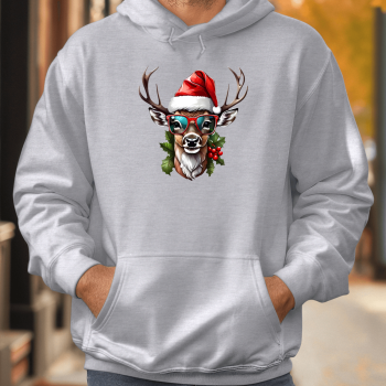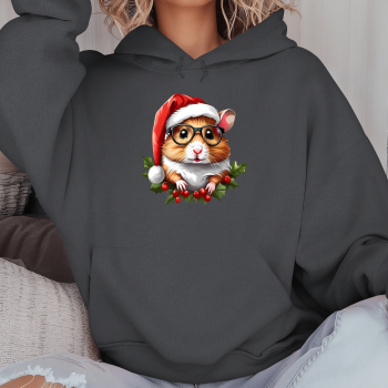 Unisex džemperis su spauda „Kalėdinė eglutė su kepure“