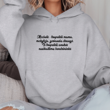 Unisex džemperis su spauda „Močiutė – nusikaltimų bendrininkė“