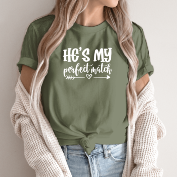 Unisex marškinėliai su spauda „He’s my perfect match“