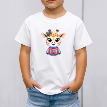 Vaikiški marškinėliai su spauda „Žirafa su kalėdiniu megztuku“