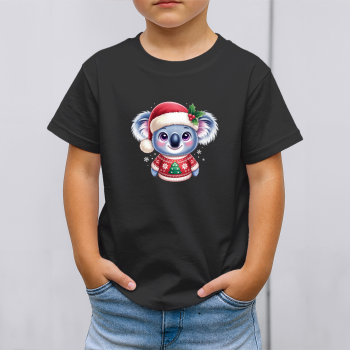 Vaikiški marškinėliai su spauda „Koala su kalėdiniu megztuku“