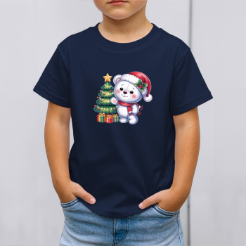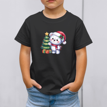 Vaikiški marškinėliai su spauda „Meškiukas puošia eglutę“