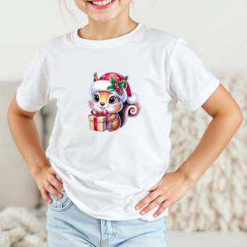 Vaikiški marškinėliai su spauda „Voveraitė su Kalėdine dovana“