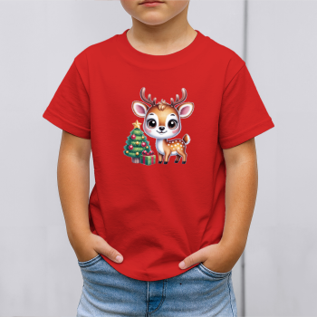 Vaikiški marškinėliai su spauda „Linksmas elniukas prie eglutės“