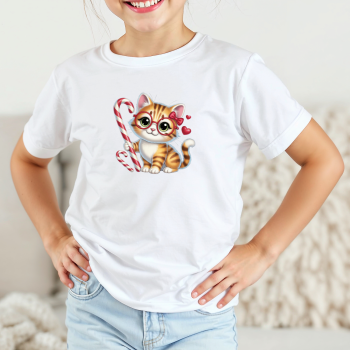 Vaikiški marškinėliai su spauda „Kačiukas su saldainine lazdele“