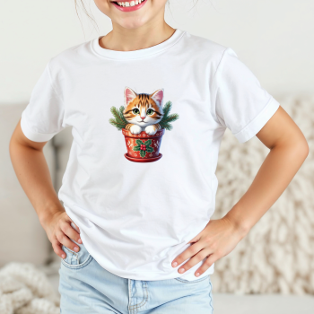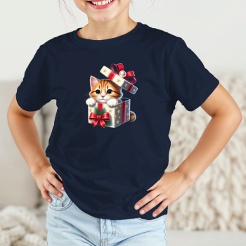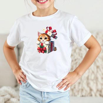 Vaikiški marškinėliai su spauda „Kačiukas Kalėdų kojinėje“